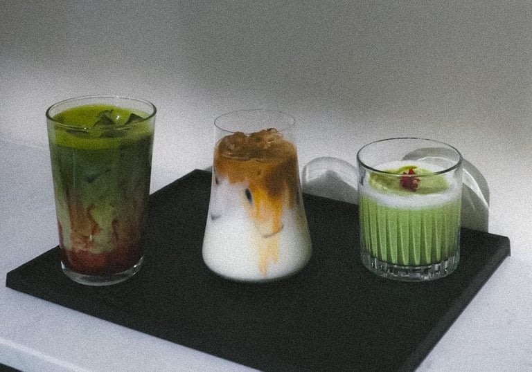 Handgemachte Matcha-Getränke und gemütliche Café-Leckereien, täglich frisch zubereitet.